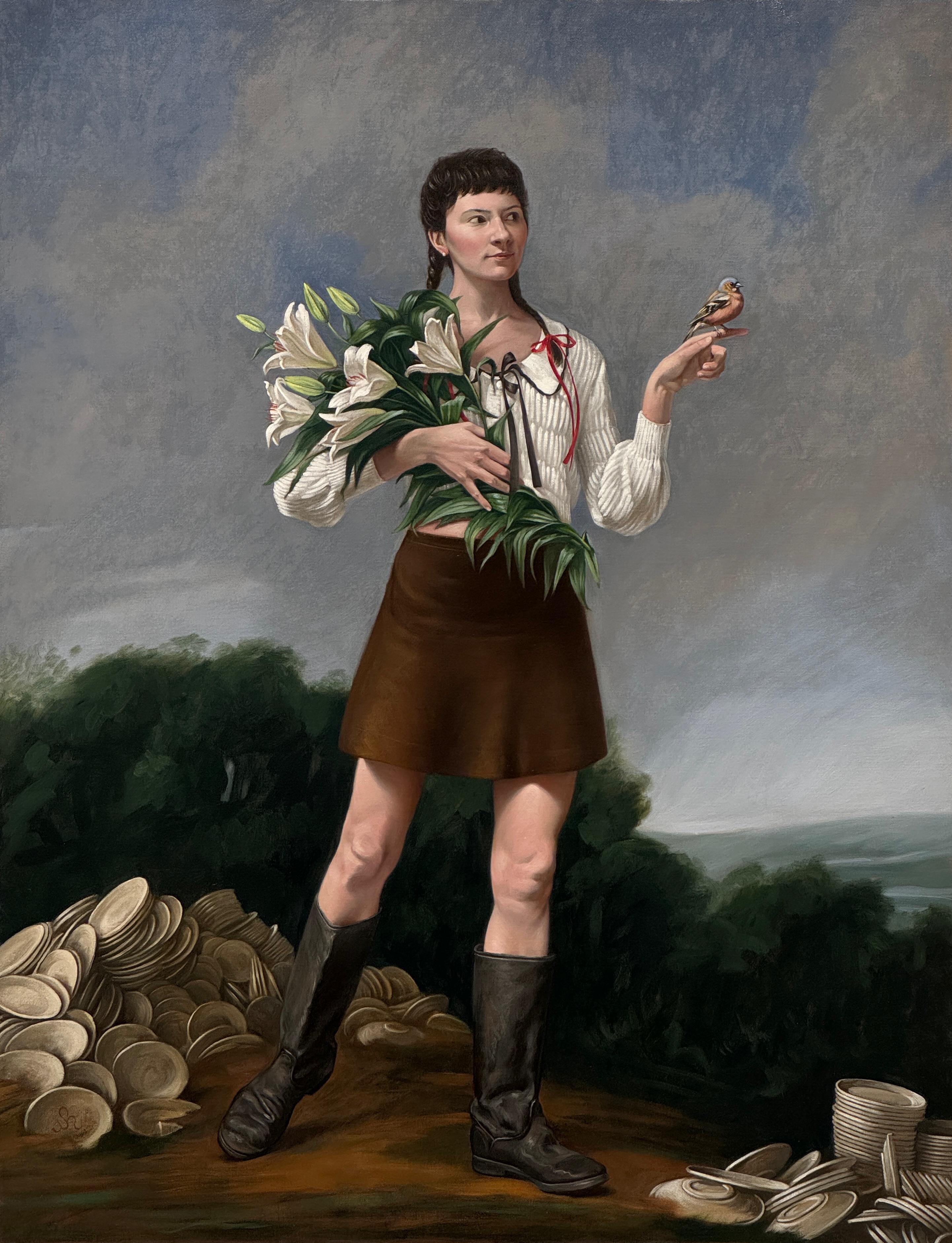 “Born in 1998 in Kharkiv, Nazar grew up in an obliquus political context echoing the USSR’s chimerical narratives and representations. Since middle school, Nazar has started translating his life experience by continuously drawing. A fate-infused encounter with an art professor close to his family and the subsequent drawing and painting classes, portraying sessions of plaster heads, and long conversations sparked a radicated devotion to painting and its history. Following his graduation in Industrial Design in his hometown, Nazar’s dedication brought him to study in Italy, magnetized by the country’s artistic heritage and the possibility of tangibly diving into Italian Renaissance and Baroque. Nazar’s spirit of observation, his penchant for fantasy and the transnational academic experience activated a pictorial language in which classical references intertwine with atemporal symbols to become collective déjà-vus. (Vittoria de Franchis)”